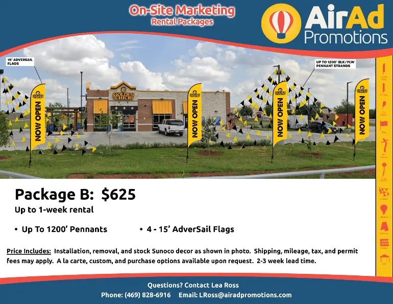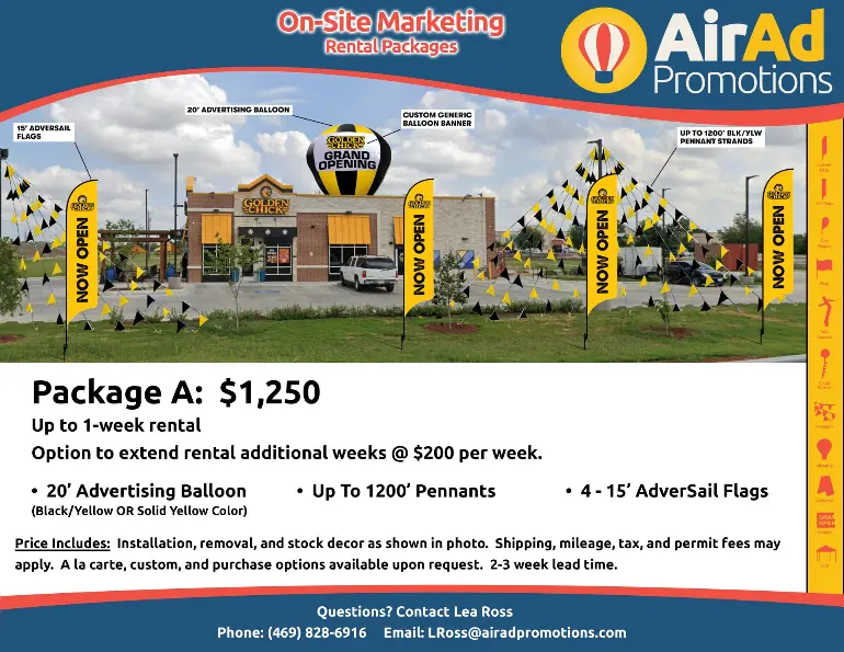 Price includes: Installation, removal, and stock Golden Chick decor as shown in photo. Shipping, mileage, tax, and permit fees may apply. A la carte, custom, and purchase options available upon request. 2-3 week lead time.